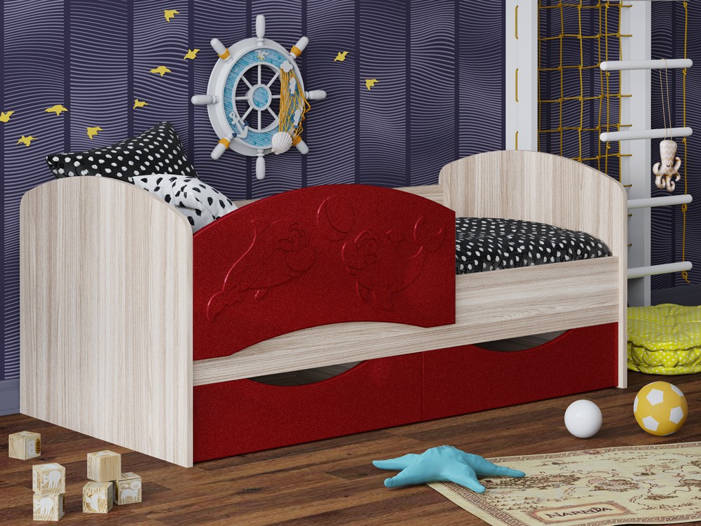 Детская Кровать Дельфин-3 МДФ с фасадом 3D/Разные Цвета